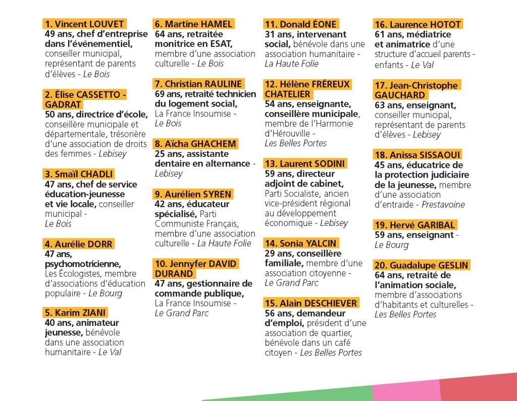 Des habitantes et des habitants investis dans la vie locale, associative, professionnelle et citoyenne, qui connaissent le terrain et les réalités du quotidien.
